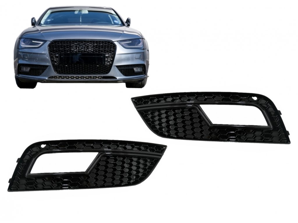Fog Lamp Covers suitable for Audi A4 B8 Facelift (2012-2015) RS4 Design Black