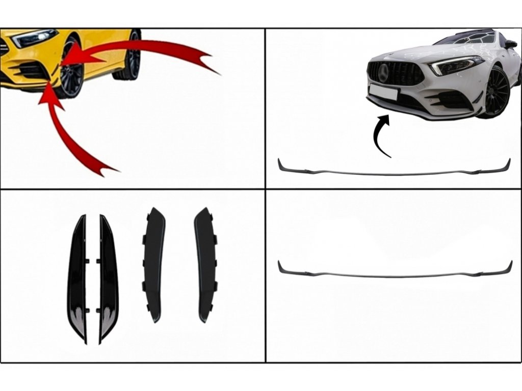Front Bumper Flaps Side Fins Flacs suitable for Mercedes A Class W177 V177 (04.2018-2022) with Front Bumper Lip Extension A35 Design Black Edition