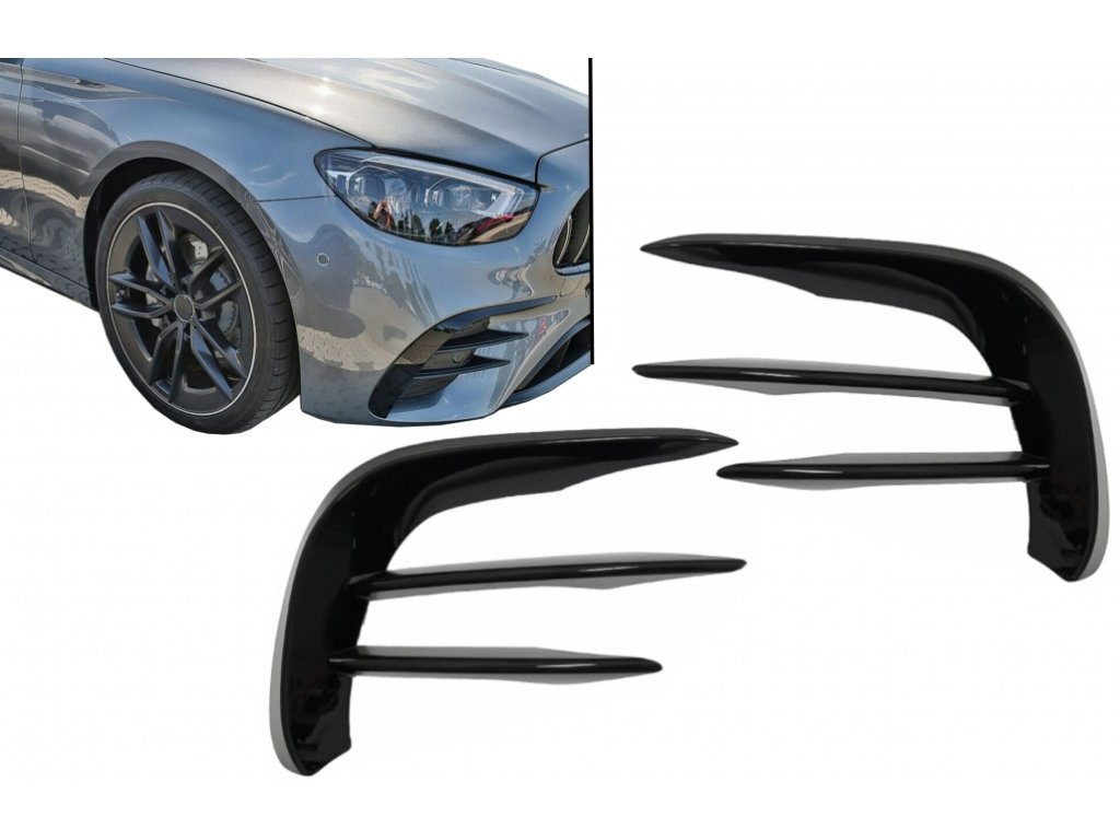 Front Bumper Flaps Side Fins Flics suitable for Mercedes E-Class W213 S213 C238 A238 Facelift (2020-up) Piano Black for AMG Sport Line