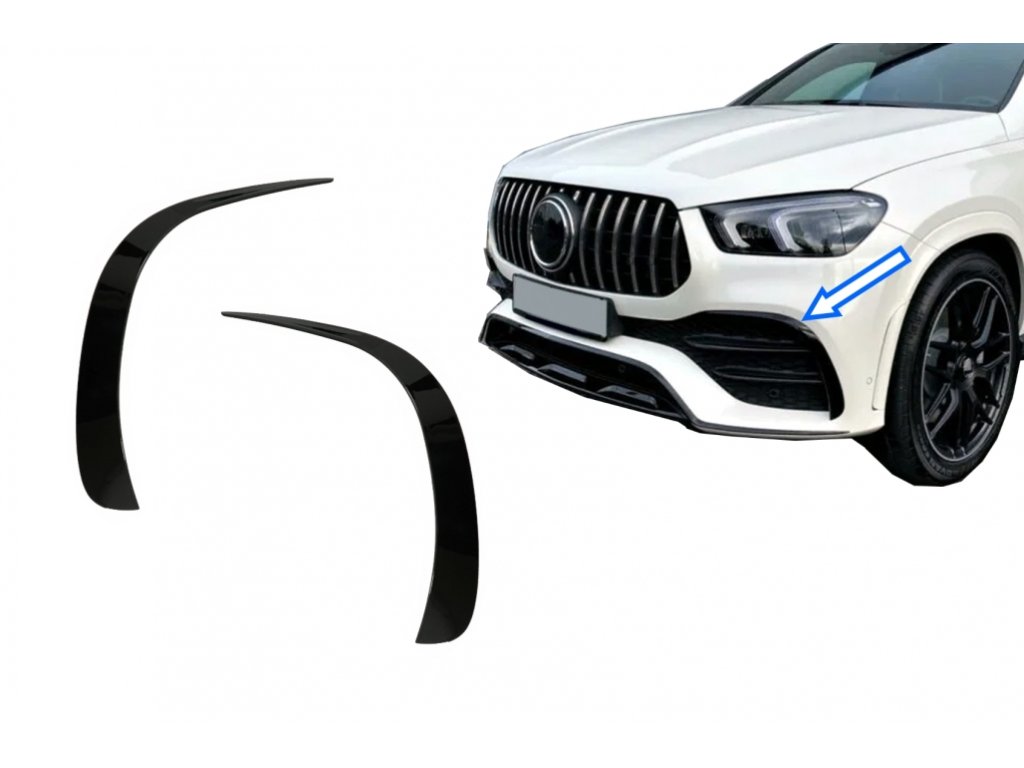 Front Bumper Flaps Side Fins Flics suitable for Mercedes GLE W167 GLE Coupe C167 (2019-up) only for AMG Sport line bumper GLE53 Design Piano Black