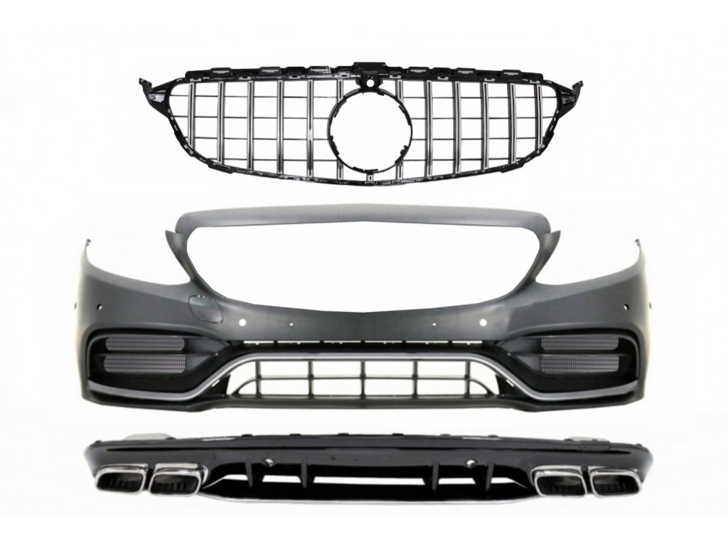 Front Bumper & Grille with Diffuser and Tips suitable for Mercedes C-Class W205 S205 AMG Sport Line (2014-2020) C63S Design