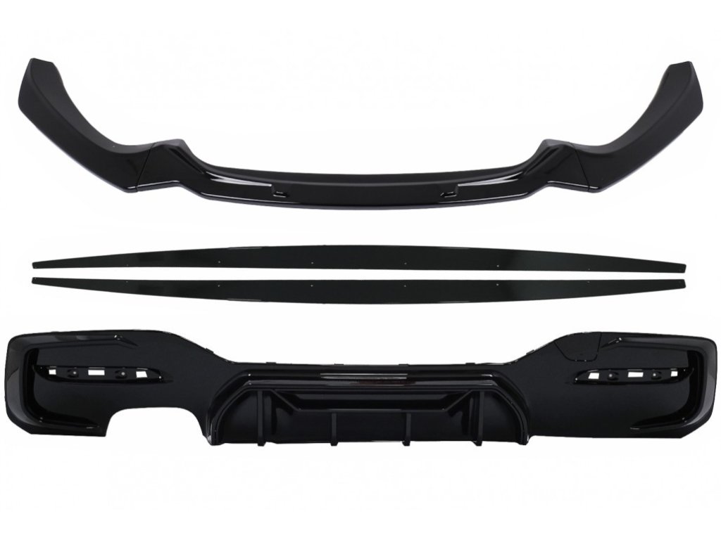 Front Bumper Lip Spoiler suitable for BMW 1 Series F20 F21 LCI (2015-2019) with Rear Bumper Spoiler Valance Diffuser and Side Skirts Extensions Hatchback M Sport Piano Black