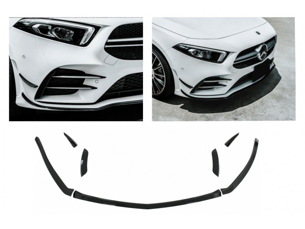 Front Bumper Splitters Fins Aero suitable for Mercedes A Class W177 Hatchback V177 Sedan (2018-2022) Piano Black