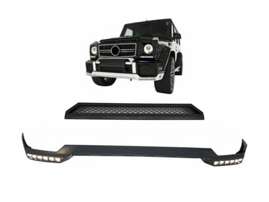 Front Bumper Spoiler LED DRL Extension and Upper Spoiler Lip suitable for Mercedes G-Class W463 (1989-2017)
