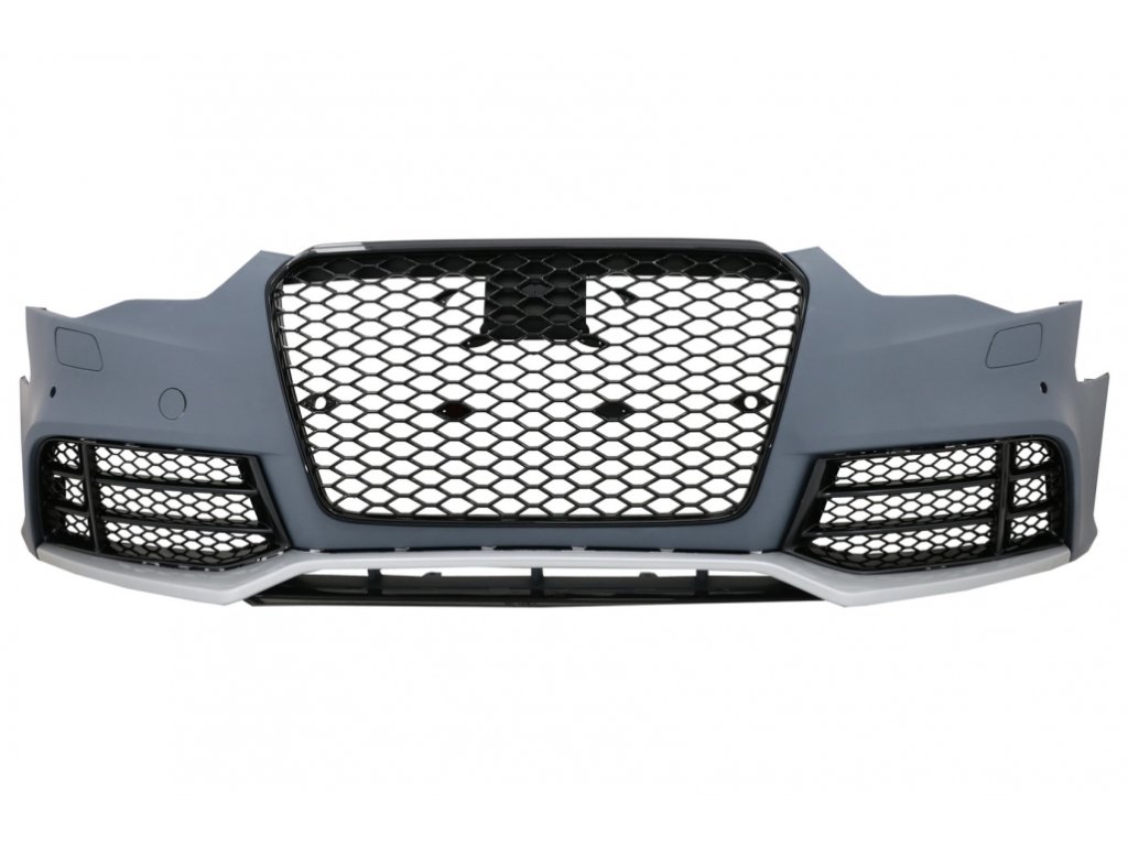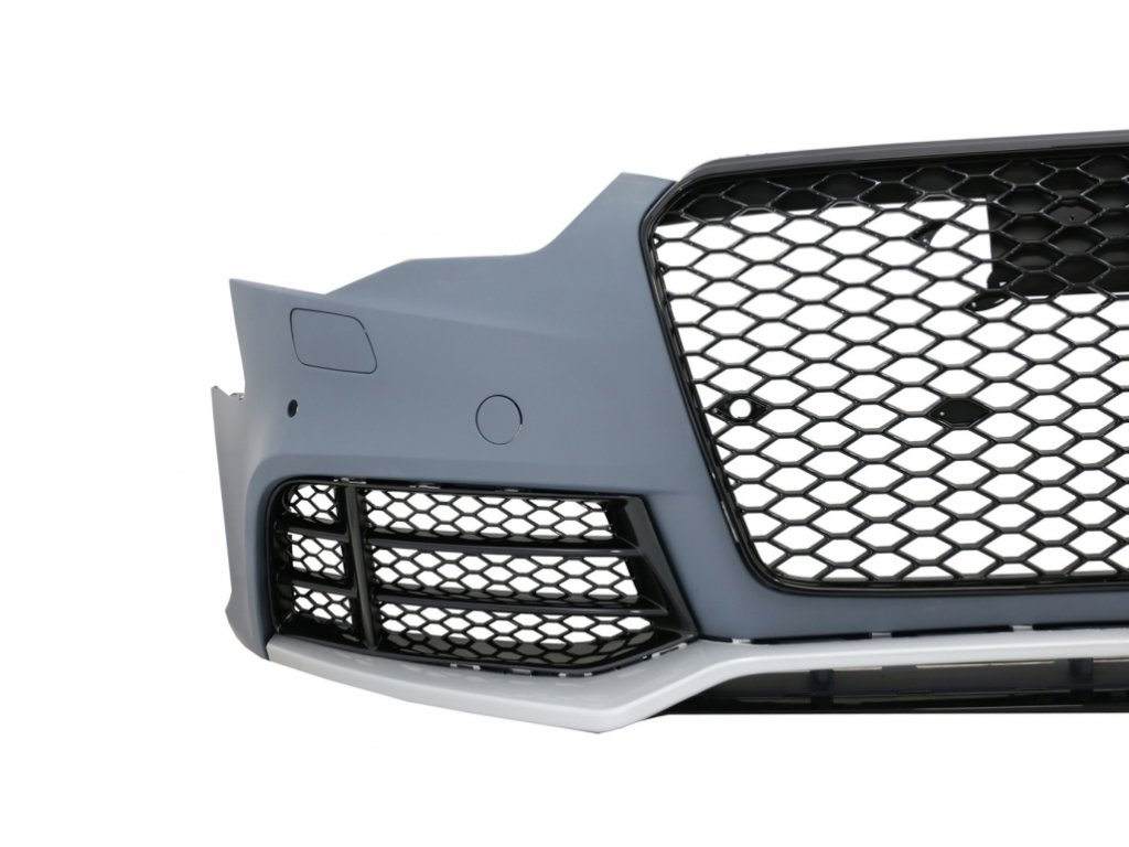 Front Bumper RS5 design made from high quality polypropylene.Equipped with honeycomb design central grille, side grilles and lower bumper extension.