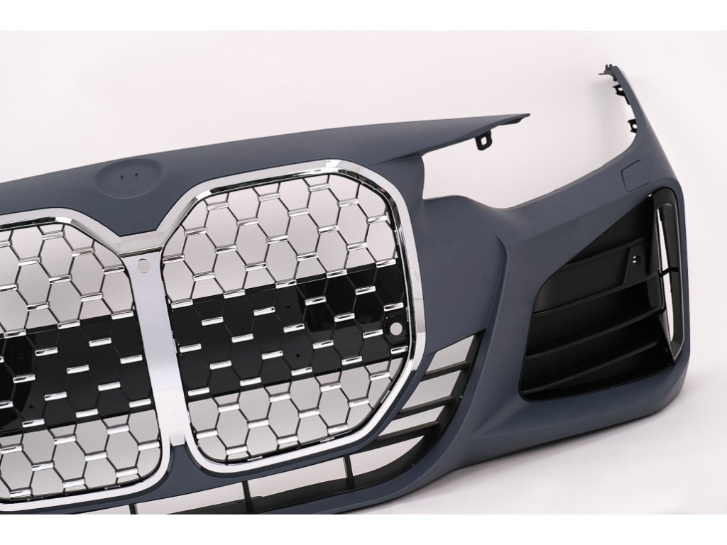 Equipped with central grille, side grilles, headlights washer system covers (SRA), parking system holders/holes (PDC).