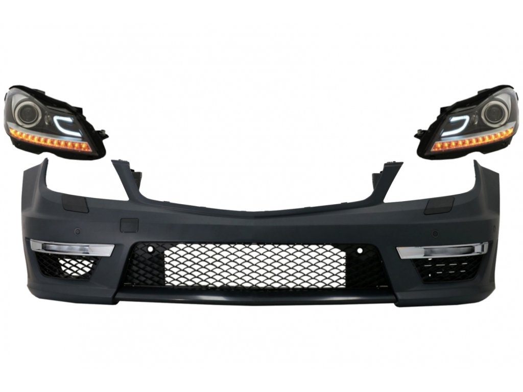 Front Bumper suitable for Mercedes C-Class W204 (2012-2014) C63 Facelift Design with Headlights DRL Black