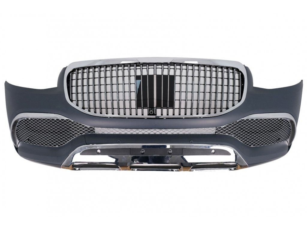 Front BumperFront bumper equipped with central grille, lower grilles, and moldings