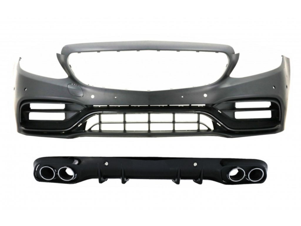 Front Bumper with Diffuser Double Outlet with Exhaust Tips suitable for Mercedes C-Class A205 C205 Coupe Cabriolet (2014-2019) C63 Design