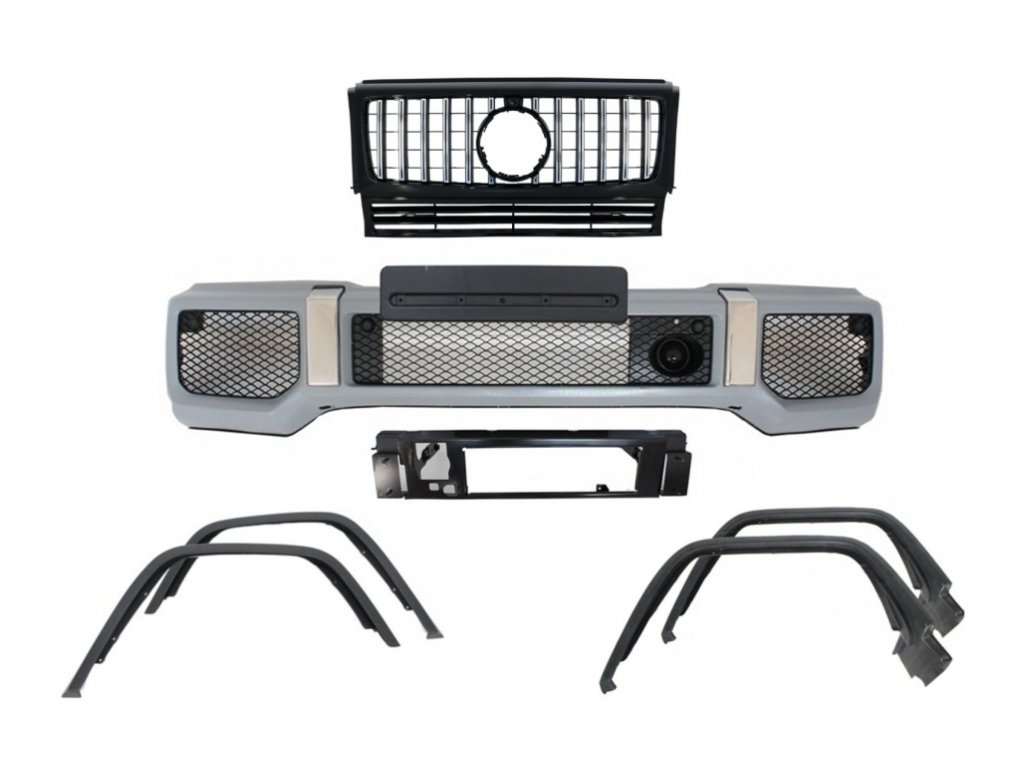 Front Bumper with Fender Flares Wheel Arches and Front Grille Black Chrome suitable for Mercedes G-Class W463 (1989-2018) G65 Design