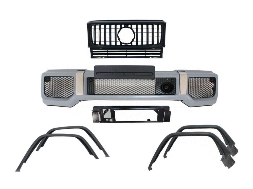 Front Bumper with Fender Flares Wheel Arches and Front Grille Black suitable for Mercedes G-Class W463 (1989-2018) G65 Design