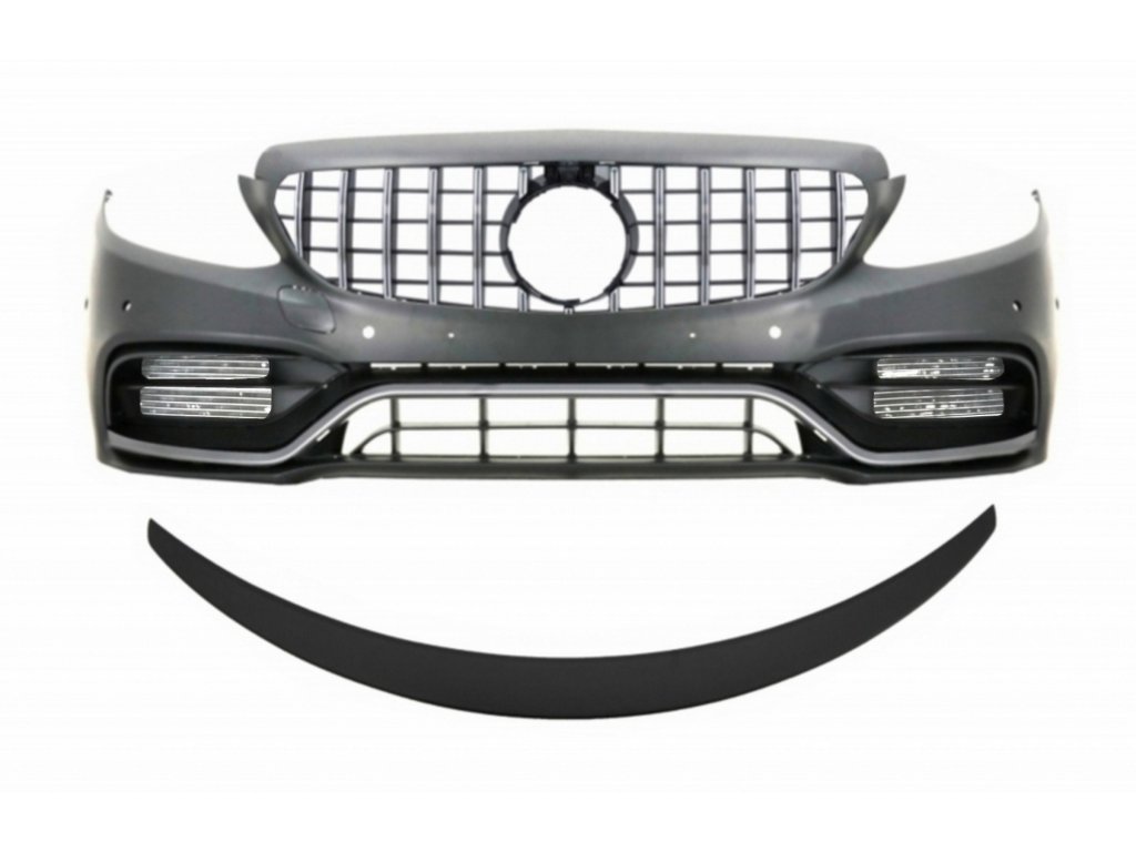 Front Bumper with Grille and Trunk Boot Spoiler Matte Black suitable for Mercedes C-Class C205 (2014-2018) C63 GT-R Design