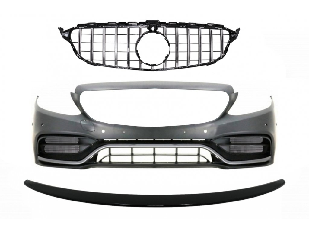 Front Bumper with Grille and Trunk Boot Spoiler Piano Black suitable for Mercedes C-Class C205 (2014-2018) C63 GT-R Design