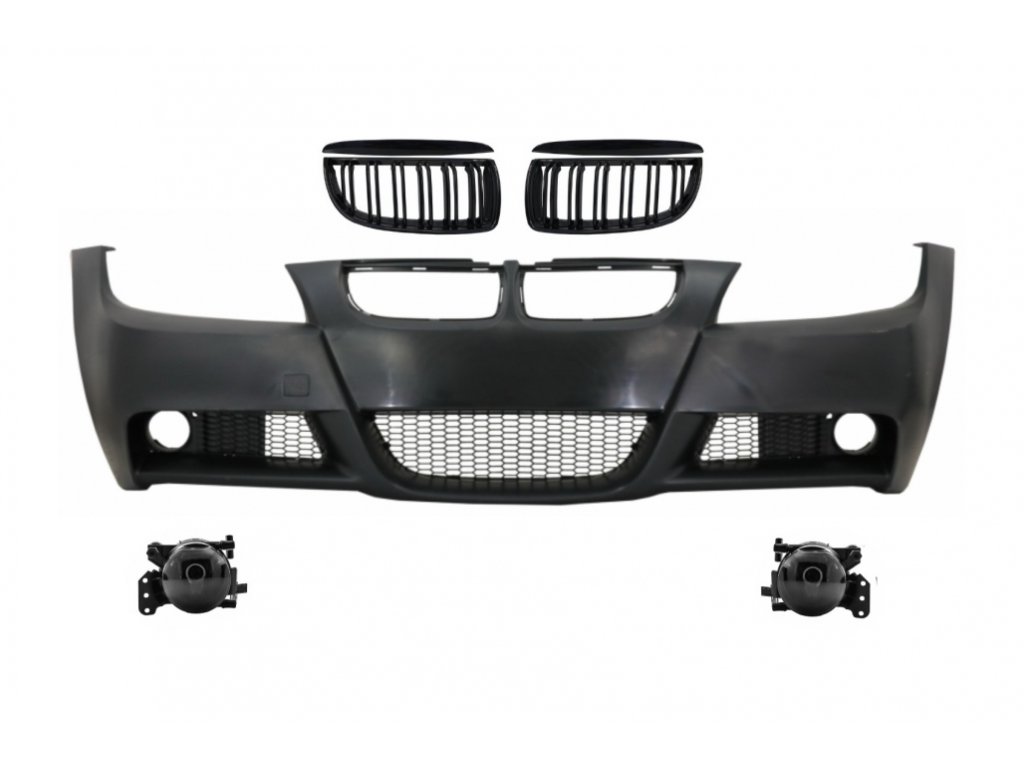 Front Bumper with Kidney Grilles and Smoke Fog Lights suitable for BMW 3 Series E90 E91 Sedan Touring (2004-2008) M-Technik Design