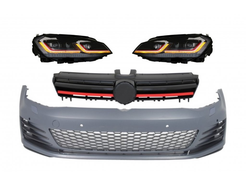 Front Bumper with LED Headlights Sequential Dynamic Turning Lights and Grille Red suitable for VW Golf VII 7 5G (2013-2017) Facelift G7.5 GTI Look