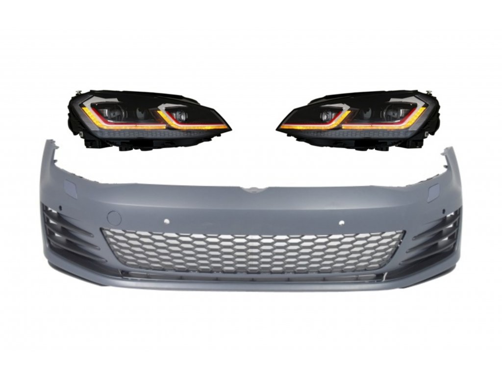 Front Bumper with LED Headlights Sequential Dynamic Turning Lights Red suitable for VW Golf VII 7 5G (2013-2017) Facelift G7.5 GTI Look