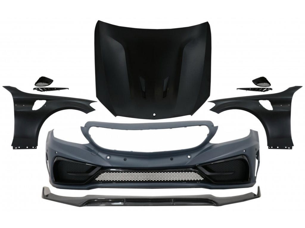 Front Bumper with Lip and Hood Bonnet & Front Fenders Suitable for Mercedes C-Class W205 S205 C205 A205 (2014-2019) GT Design
