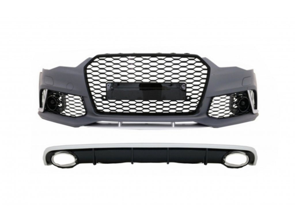Front Bumper with Rear Bumper Diffuser with Exhaust Tips suitable for Audi A6 C7 4G Facelift (2011-2014) RS6 Design