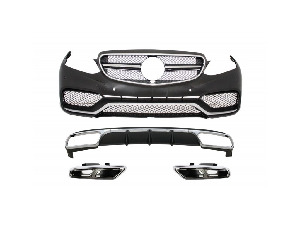 Front Bumper with Rear Diffuser and Exhaust Muffler Tips Chrome suitable for Mercedes E-Class W212 Facelift (2013-2016) E65 Design only Standard Bumper