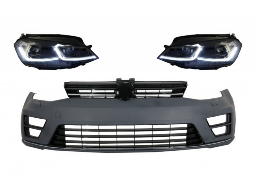 Front Bumper with RHD LED Headlights Sequential Dynamic Turning Lights suitable for VW Golf VII 7 (2013-2017) R-Line Look