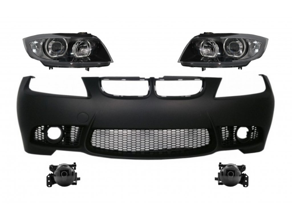 Front Bumper without PDC with Fog Light Projectors and Headlights Black suitable for BMW 3 series E90 E91 Non-LCI (2005-2008) Sedan Touring M3 Design