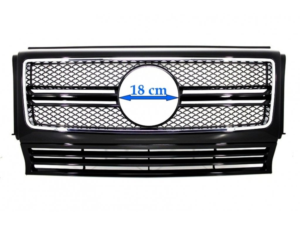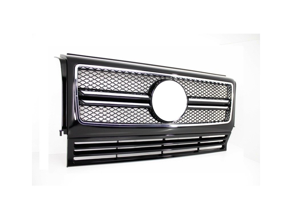 Front Grille Suitable for Mercedes G-Class W463 (1990-2012) G65 Design Piano Black Chrome Frame