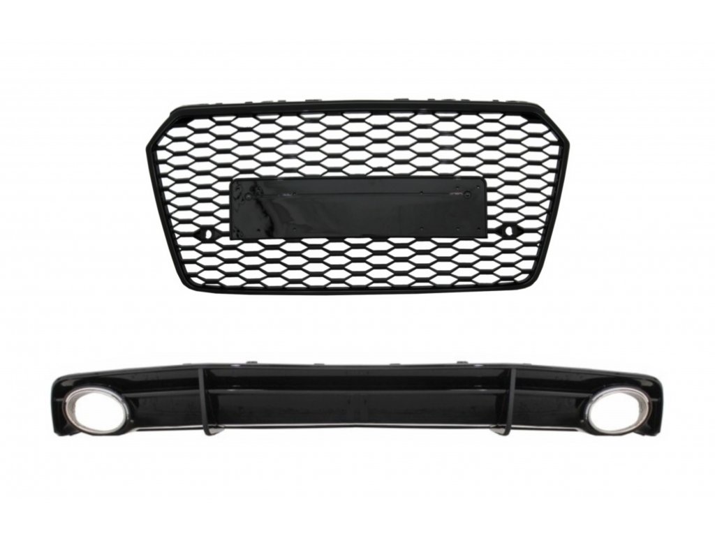 Front Grille with Rear Bumper Valance Diffuser and Exhaust Tips suitable for Audi A7 4G Facelift (2015-2017) RS7 Design only S-Line