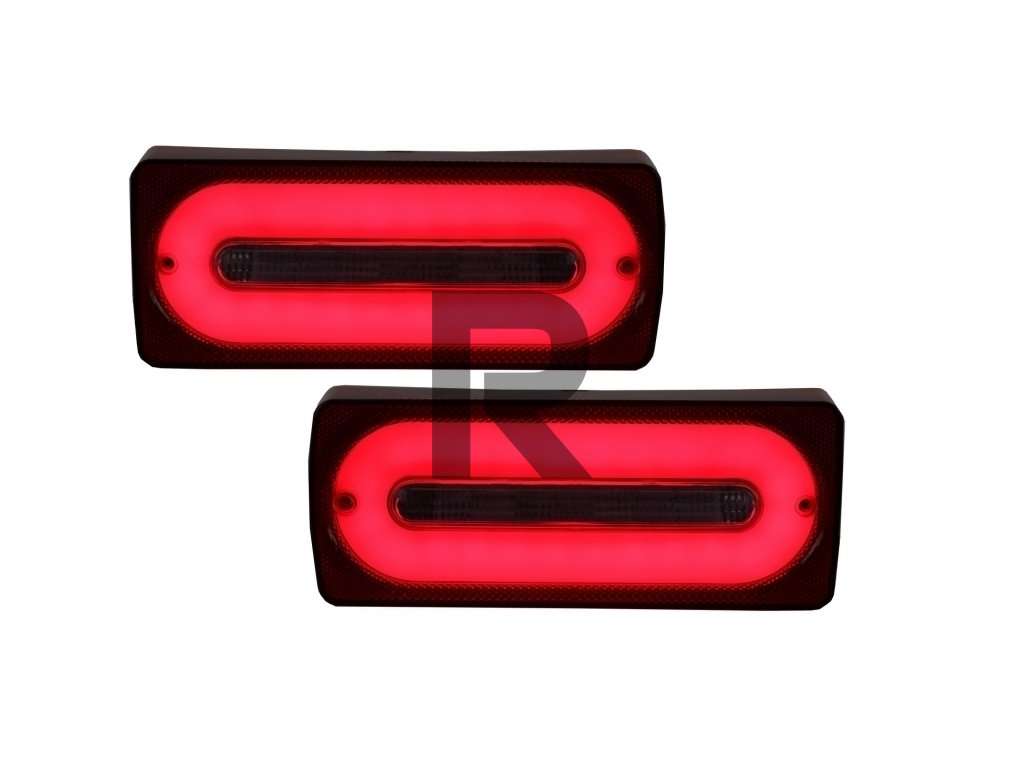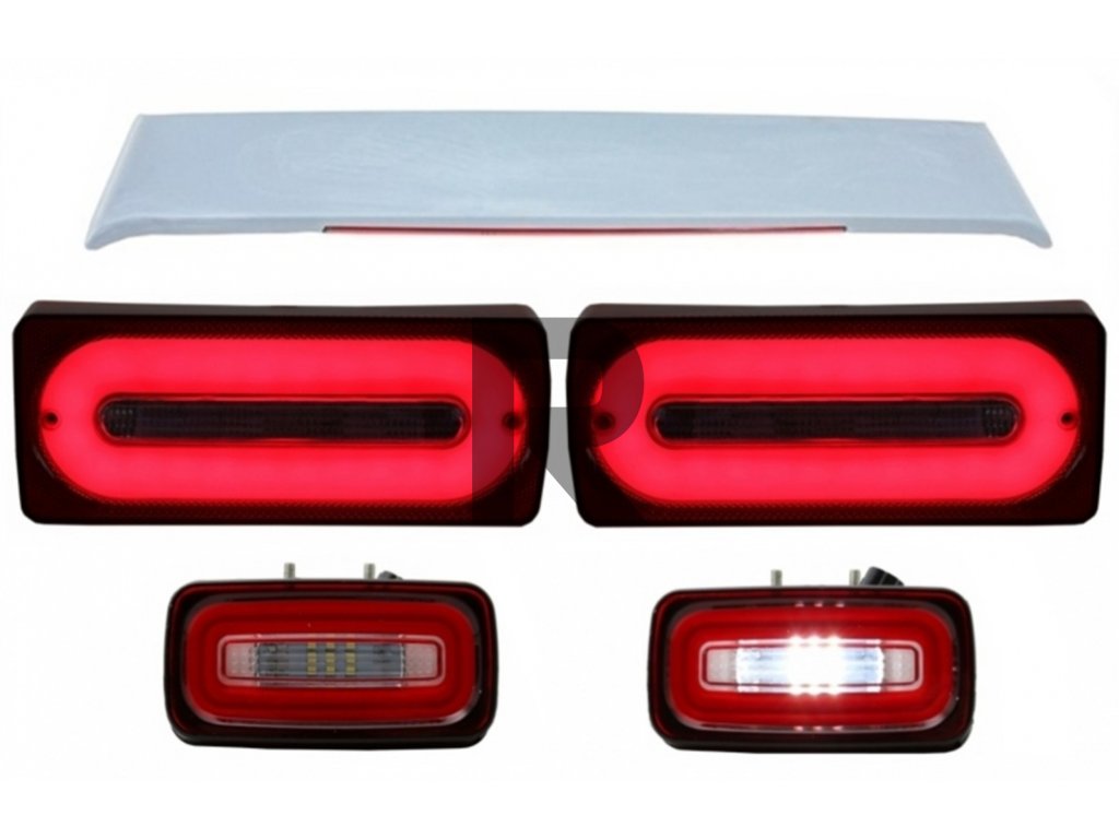 Full LED zadné svetlá, svetelný panel, ČERVENÉ dynamické sekvenčné smerové svetlá s hmlovými svetlami a strešným spojlerom, vhodné pre Mercedes G trieda W463 (1989-2015)