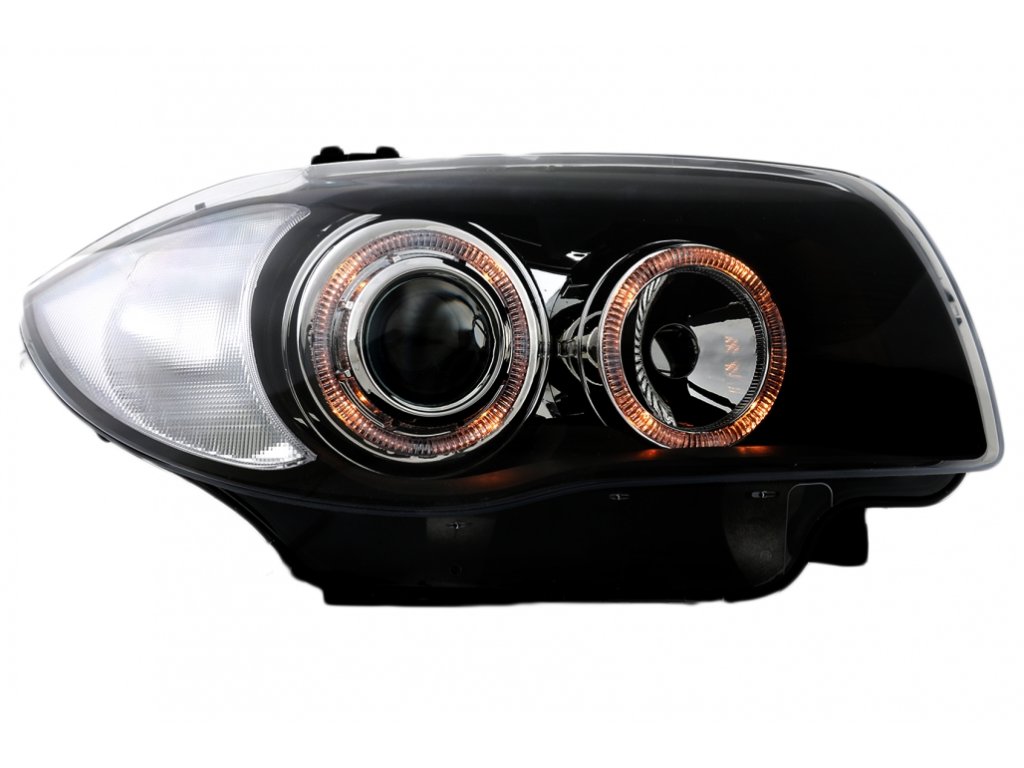 Headlights suitable for BMW Seria 1 E81 E82 E87 E88 (2004-2011) Angel Eyes 2 Halo Rims Black