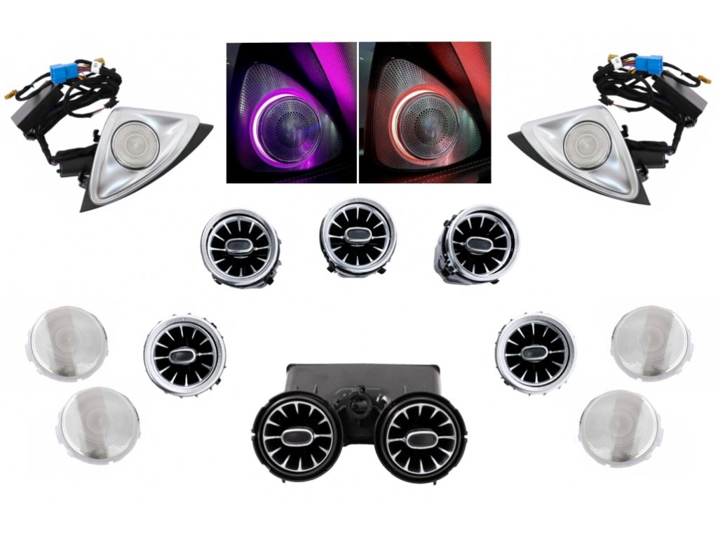 Kit AC Vent Grilles Door Middle Speaker Cover 4D Rotary Tweeters 64 colors suitable for Mercedes C-Class W205 Facelift (2018-2020)