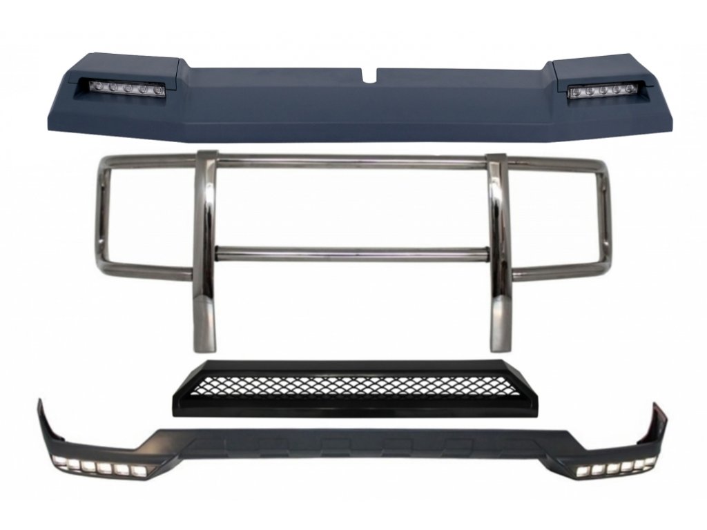 Kit Front BullBar and LED Roof Spoiler with Upper Spoiler Lip and LED DRL Extension suitable for Mercedes G-Class W463 (1989-2018) G63 G65 Design