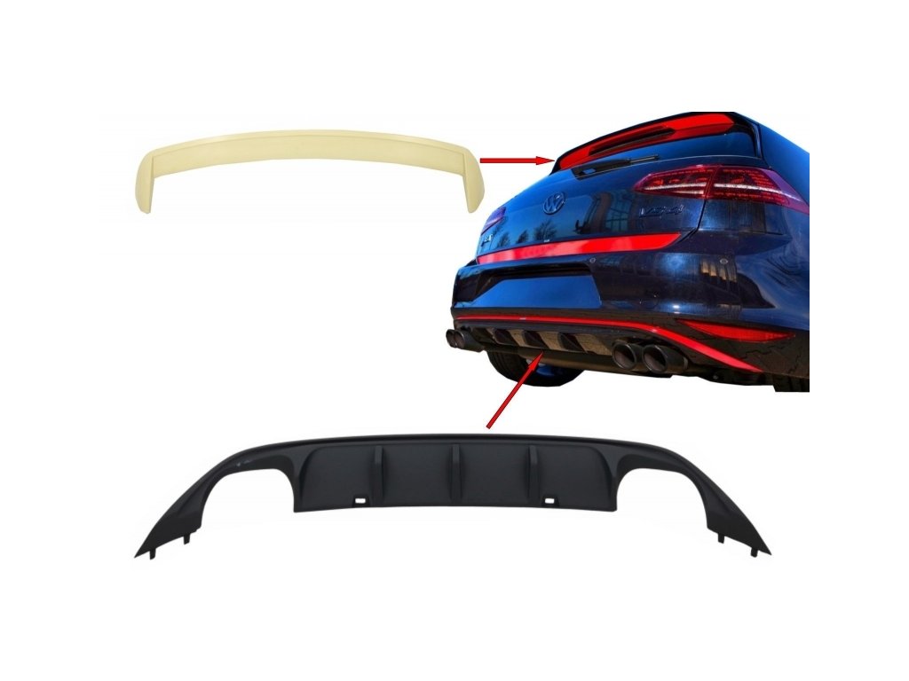 Kit Rear Bumper Air Diffuser with Roof Spoiler suitable for VW Golf 7 VII (2013-2017) ABT Look