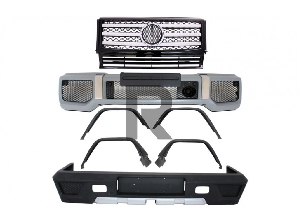 Kompletná konverzná sada karosérie vhodná pre MERCEDES G Class W463 (1989-2017) G63 G65 s prednou mriežkou v klavírnej čiernej farbe s chrómovými pruhmi