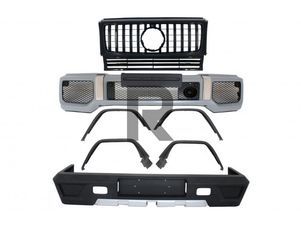 Kompletná konverzná sada karosérie vhodná pre Mercedes triedy G W463 (1989-2017) dizajn G63 G65 s prednou mriežkou Panamericana, celá čierna