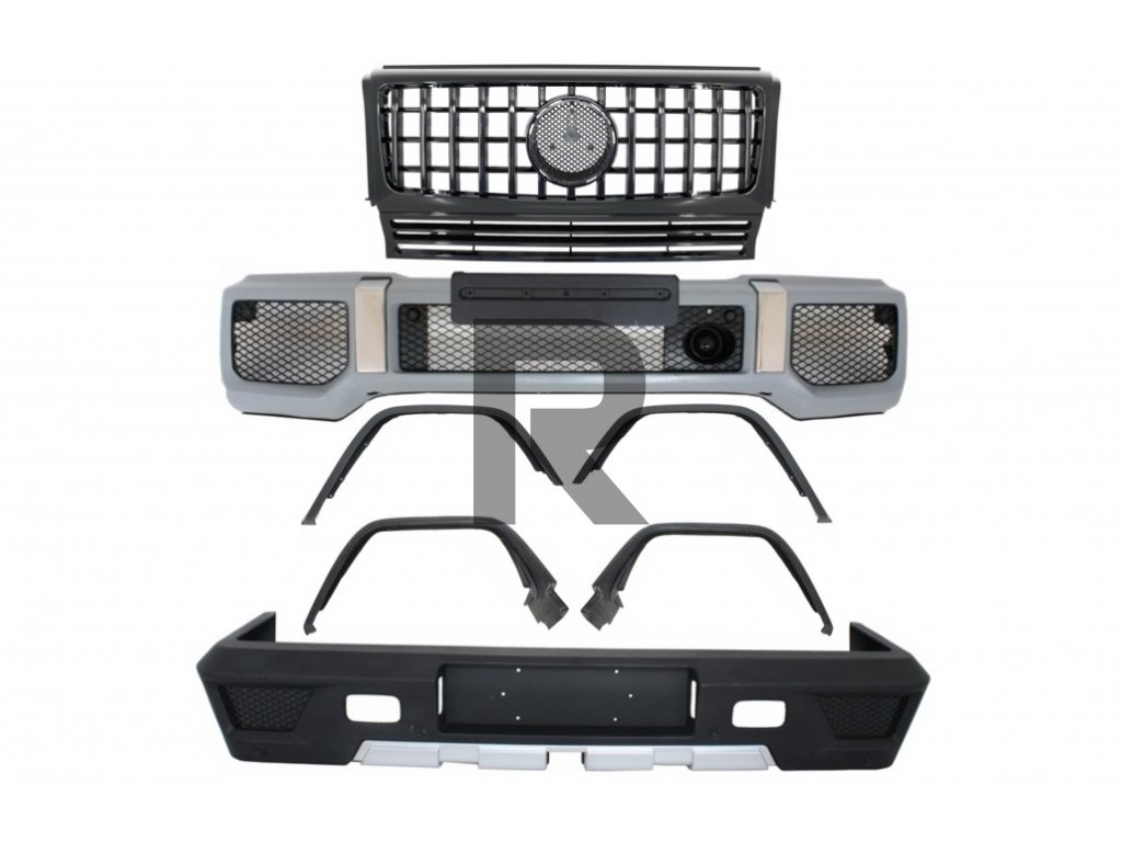 Kompletná konverzná sada karosérie vhodná pre Mercedes triedy G W463 (1989-2017) G63 G65 Design s prednou mriežkou Panamericana, celá v klavírnej čiernej farbe