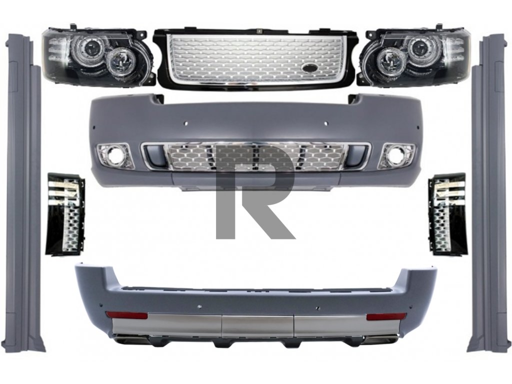 Kompletná prestavba karosérie Autobiography Design pre Land Range Rover Vogue L322 (2002-2012) Retrofit po facelift (2010-up) edícia Black Silver Grille.