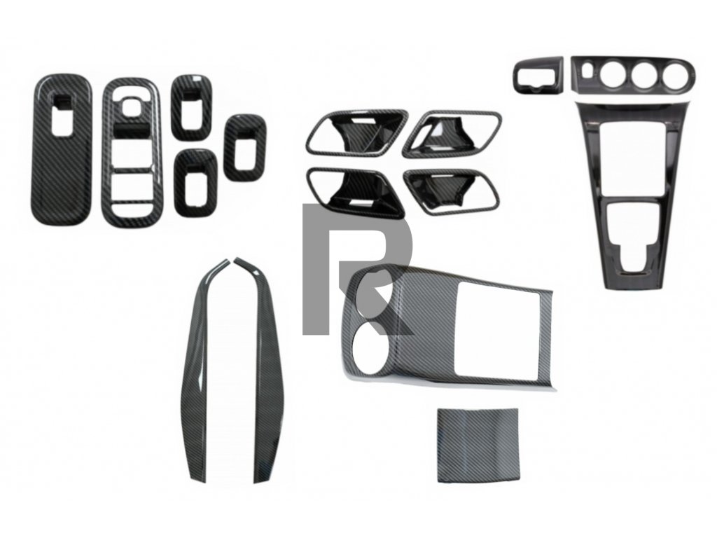 Kompletná sada dekoratívnych interiérových rámov vhodná pre Mercedes A W177 V177 (2018-up) so zadnou karbónovou fóliou pre výduch vzduchu v lakťovej opierke.