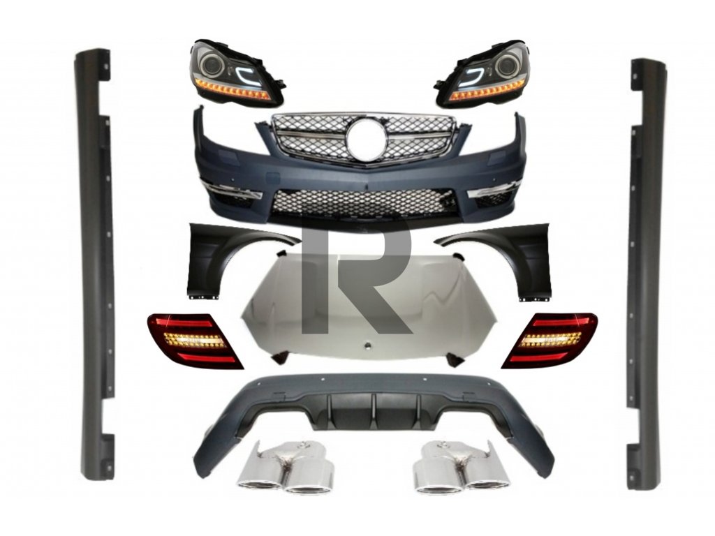 Kompletná sada karosérie so svetlami vhodná pre Mercedes triedy C W204 (2007-2014) Facelift C63 Design