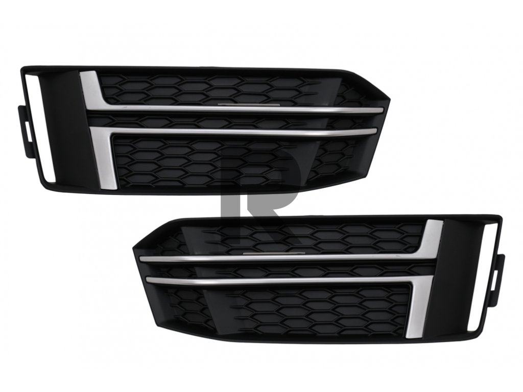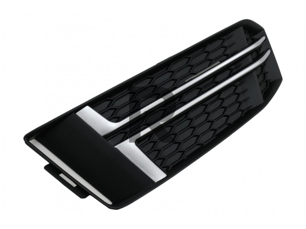 Kryty bočných mriežok s dizajnom RS4 vyrobené z vysoko kvalitného ABS plastu.Povrchová úprava: Matná čierna s chrómovými vložkami