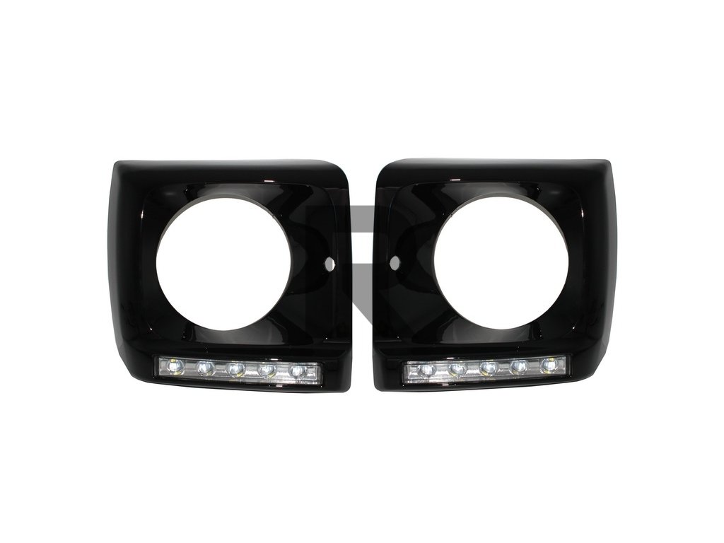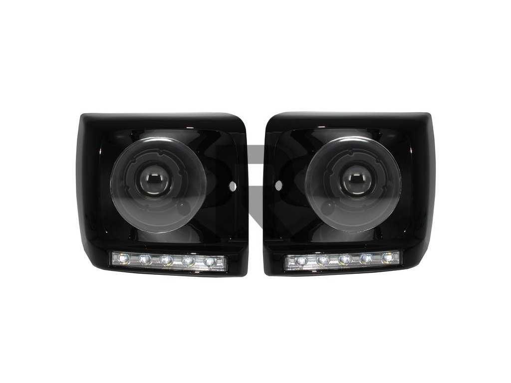Kryty svetlometov LED denné svietenie chrómové vhodné pre Mercedes Trieda G W463 (1989-2012) dizajn G65 s čiernymi svetlometmi, bi-xenónový vzhľad