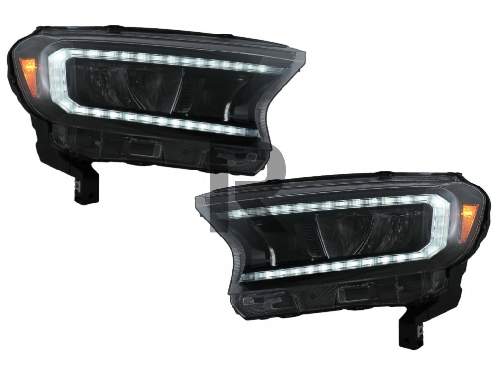 LED svetelný panel pre svetlomety vhodný pre Ford Ranger (2015-2020) s ľavostranným pohonom, plne čierny kryt so sekvenčnými dynamickými smerovými svetlami
