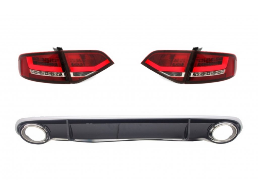 LED Taillights with Rear Diffuser and Exhaust Tips suitable for Audi A4 B8 8K Limousine (2007-2010) Red Clear RS4 Design