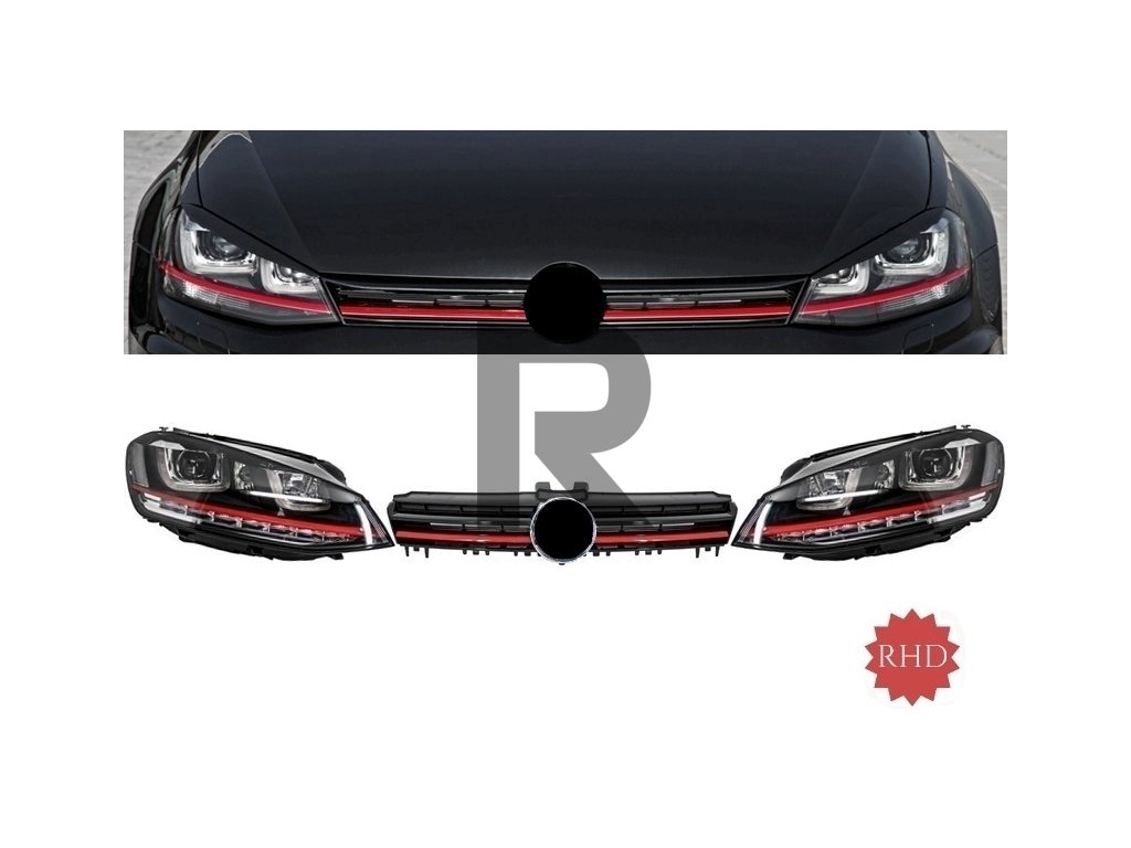 Montáž svetlometov 3D LED FLOWING Dynamické sekvenčné smerové svetlo RHD s mriežkou vhodné pre VW Golf 7 VII (2012-2017) ČERVENÉ R20 GTI Look