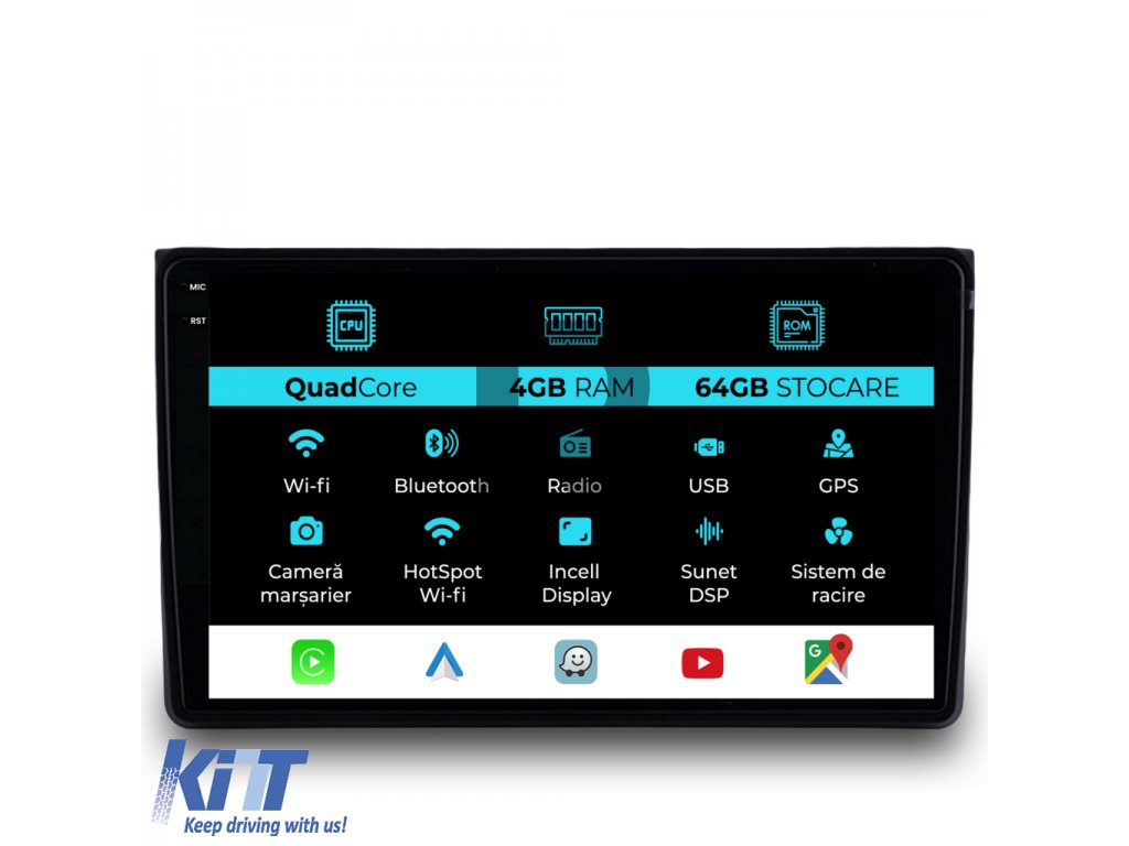 Navigácia pre Audi A4 (2001-2008), štvorjadrový procesor, 9-palcový displej, 4 GB RAM, 64 GB úložisko, CarPlay