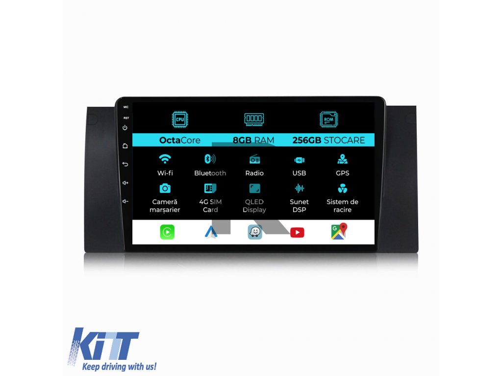 Navigácia pre BMW radu 5 E39, X5 E53 (1995-2003), 9 palcov, 8 GB RAM, 256 GB úložisko, CarPlay
