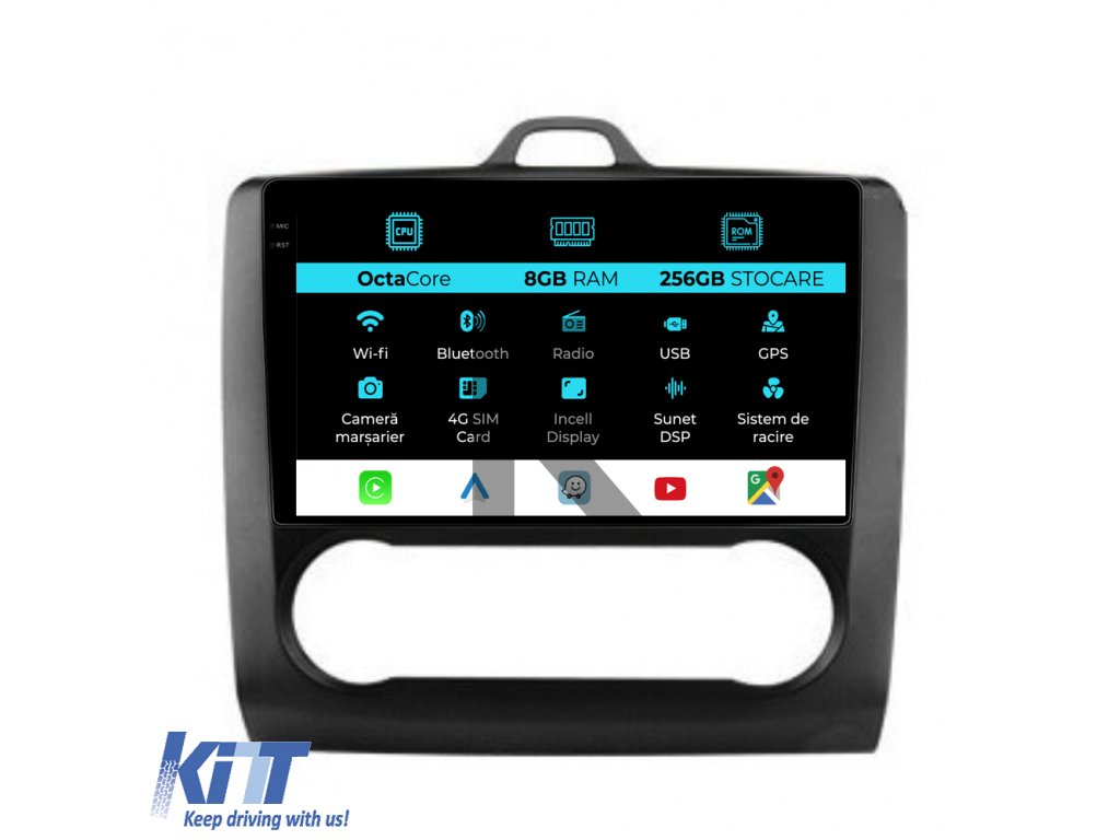 Navigácia pre Ford Focus, (2004-2012), 9-palcový displej, 8 GB RAM, 256 GB úložisko, CarPlay, automatická klimatizácia