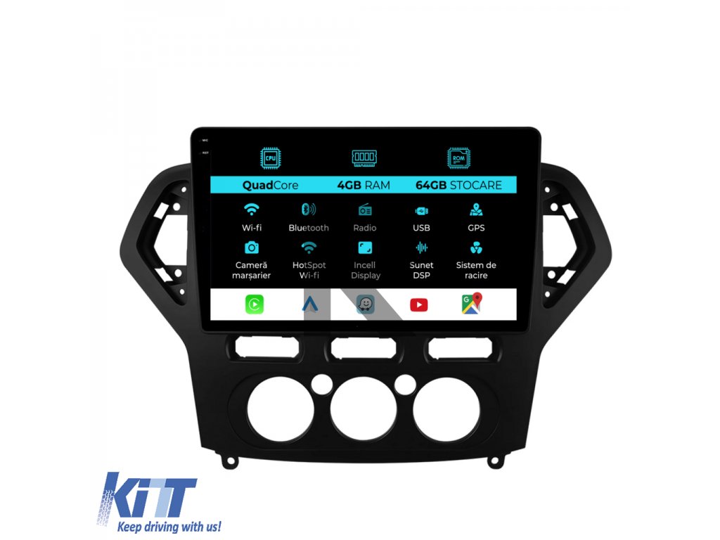 Navigácia pre Ford Mondeo, 2007-2014, štvorjadrový procesor, 10-palcový displej, 4 GB RAM, 64 GB úložisko, CarPlay