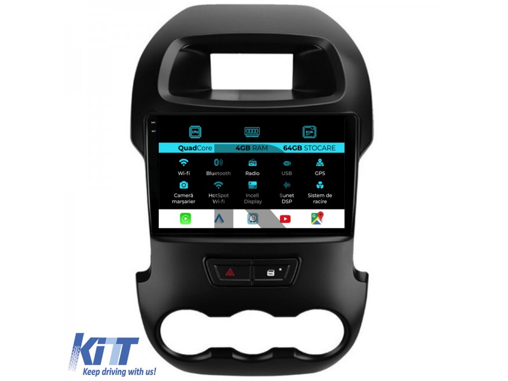 Navigácia pre Ford Ranger, 2012-2015, štvorjadrový procesor, 9-palcový displej, 4 GB RAM, 64 GB úložisko, CarPlay