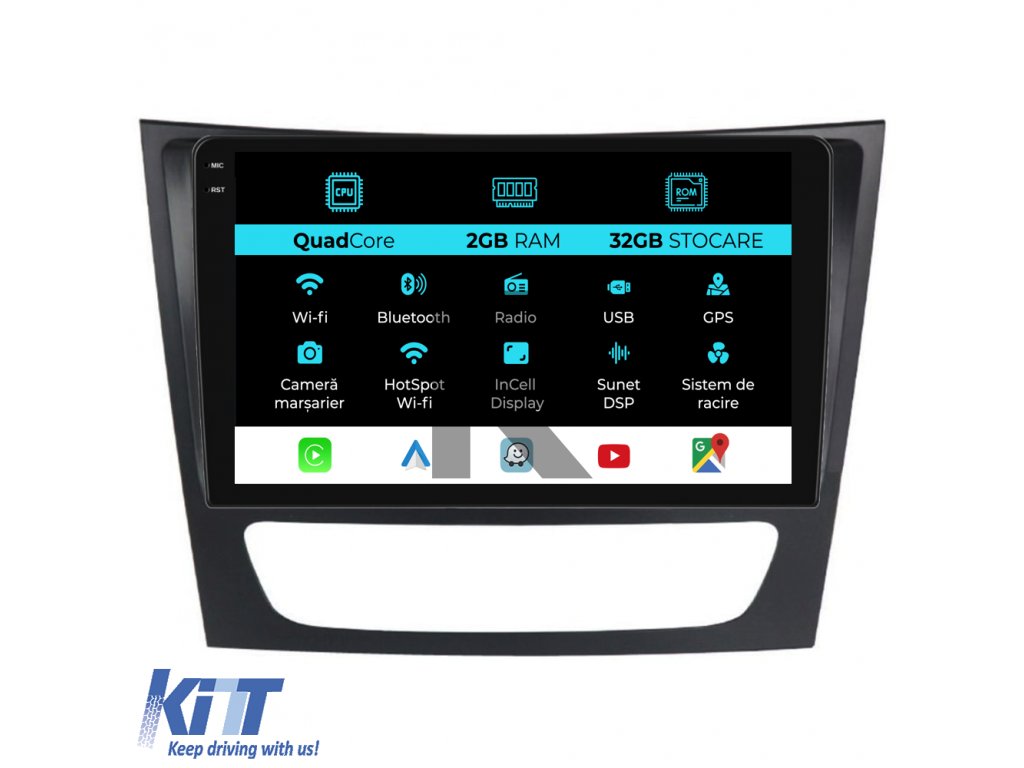 Navigácia pre Mercedes triedy E W211 (2002 - 2010), 9-palcový displej, 2 GB RAM, 32 GB úložisko, CarPlay