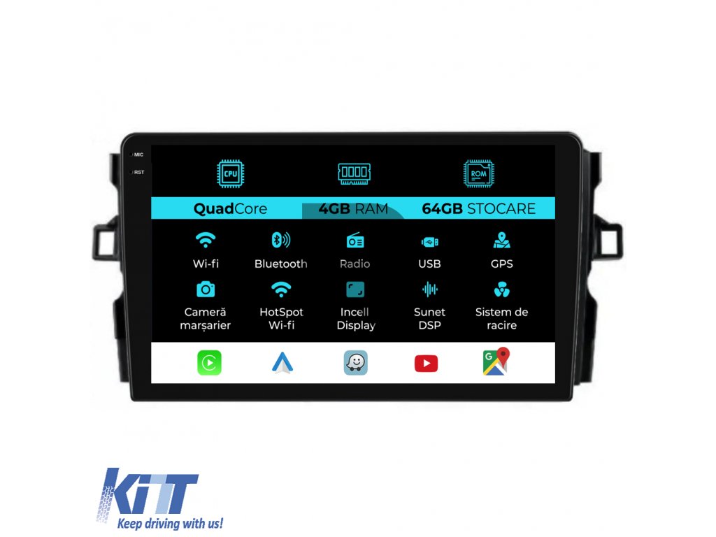 Navigácia pre Toyota Auris (2006 - 2012), štvorjadrový procesor, 10-palcový displej, 4 GB RAM, 64 GB úložisko, CarPlay.